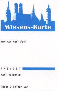 In dem Spiel "Lerne München kennen" aus dem Jahr 1987 wird doch tatsächlich in einer sog. Wissenskarte gefragt, wer Karl Fey war. Der Familienname Fey stimmt ja noch, aber seine Vornamen waren Valentin Ludwig und nicht Karl! |